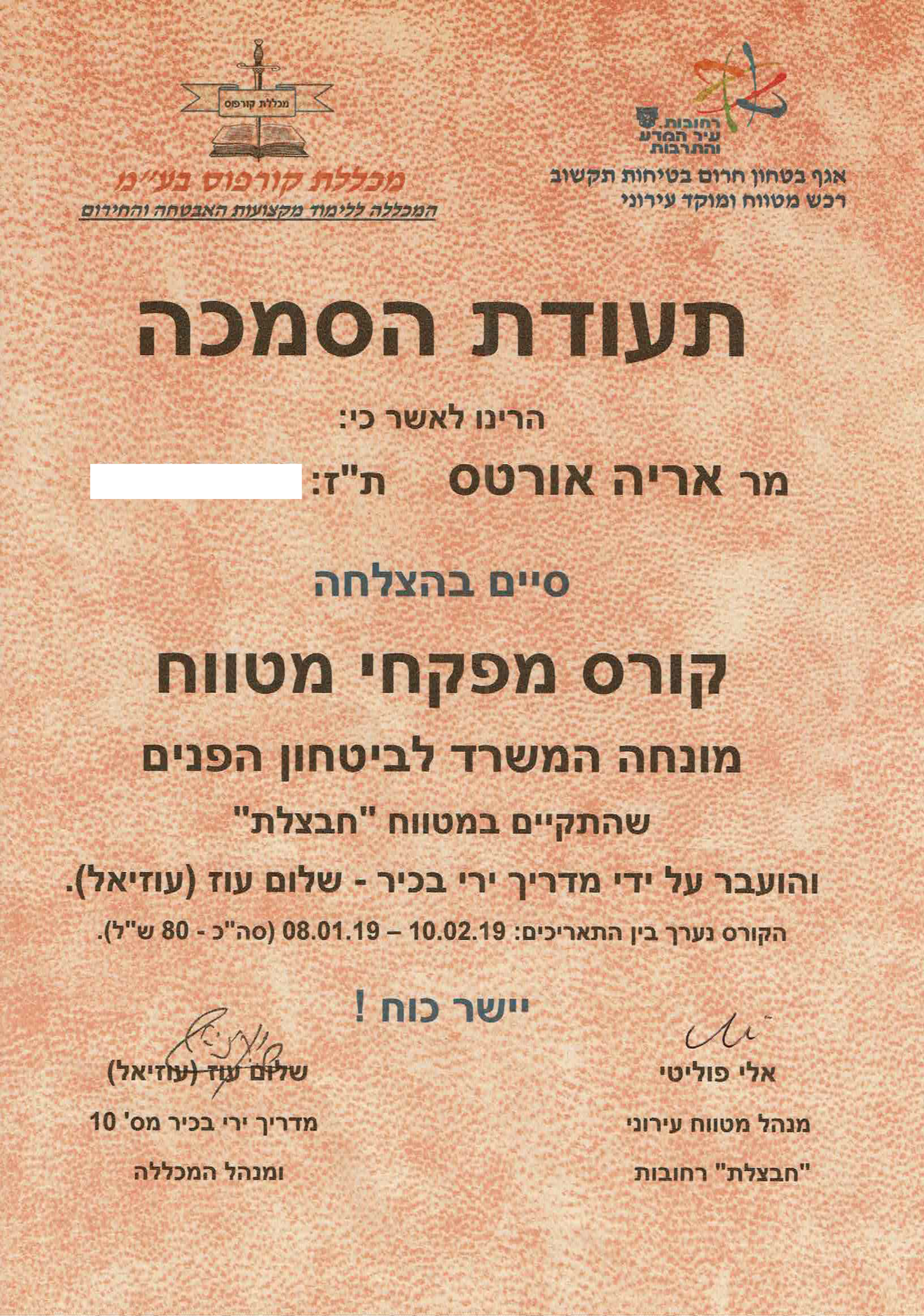 אריה אורטס למד קורס מפקחי מטווח וקורס מדרכי ירי ולחימה מנחה המשרד לביטחון פנים במכללת קורפוס מהמדריך הבחיר שלום עוז ( עוזיאל ) וכיום הוא משמש בתור מדריך ירי ולחימה, אריה אורטס הקים את הקורס ללוחמה טקטית וגם מעביר את קורס ( קורס לוחמה טקטית )