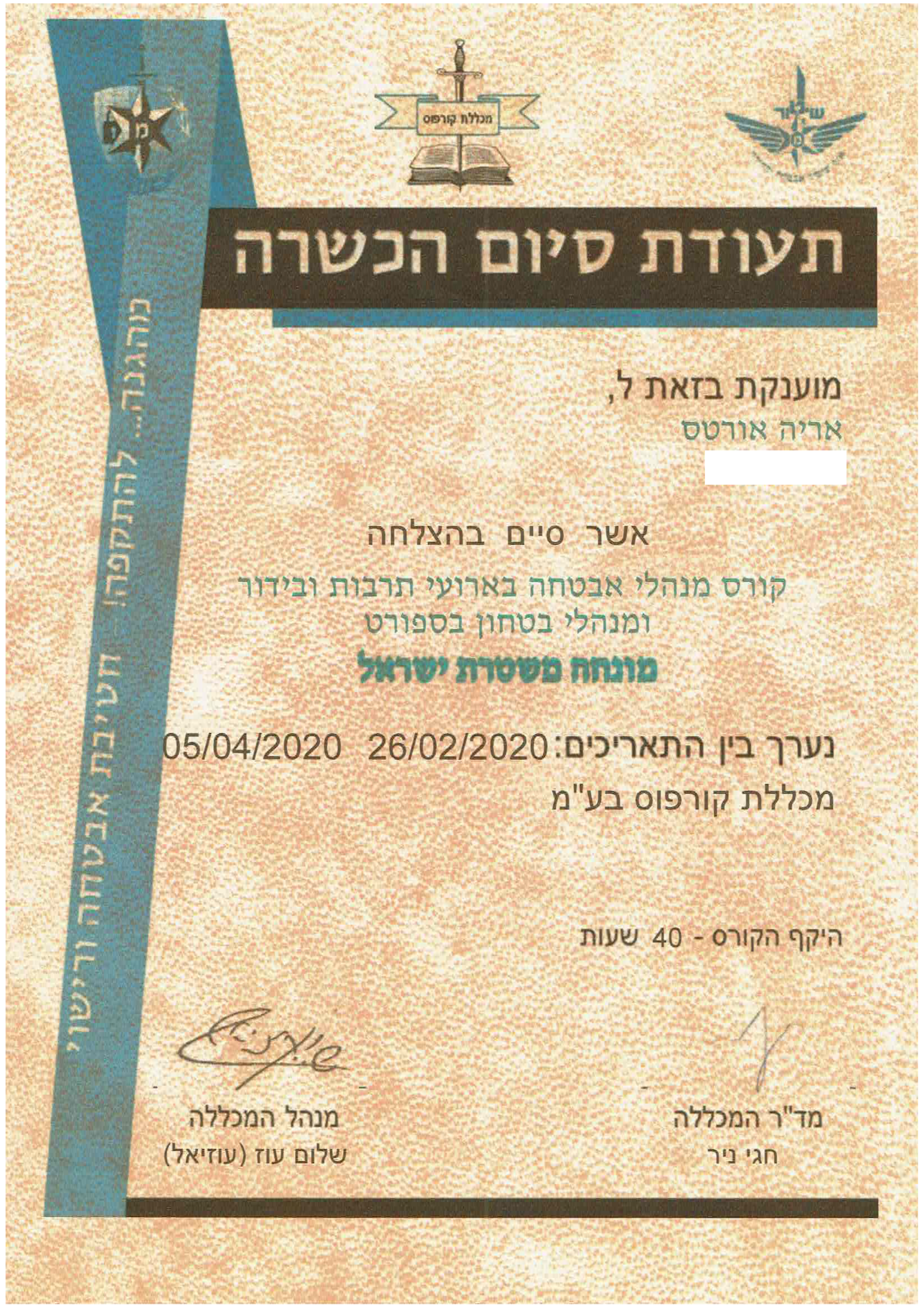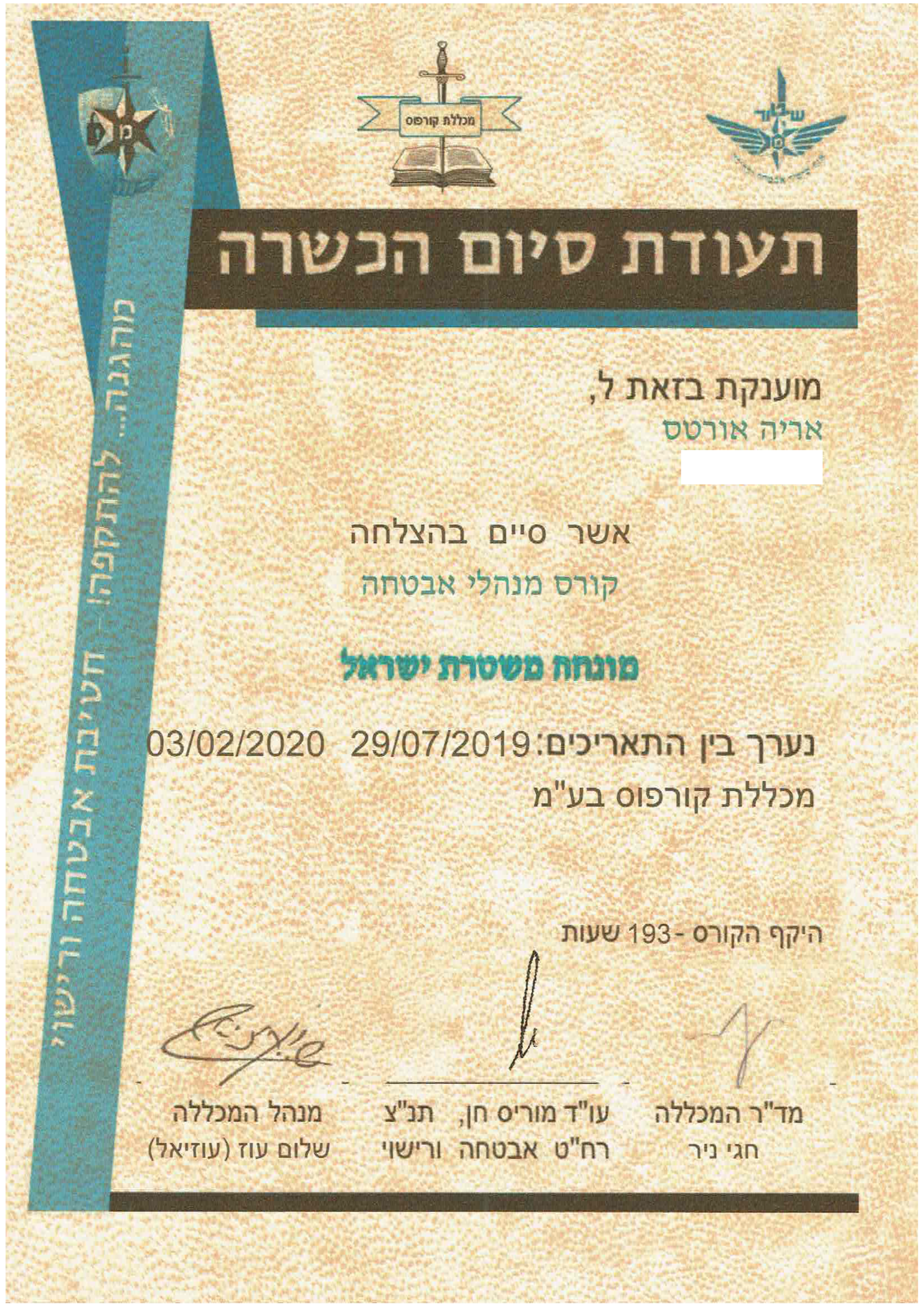את לימודי מנהל האבטחה אריה אורטס למד במכללת קורפוס וכיום הוא משמש בטור יועץ ביטחוני וגם כמנהל אבטחה מונחה משטרת ישראל . מנהל אבטחה באירועים המוניים. ומנהל בטחון בספורט .